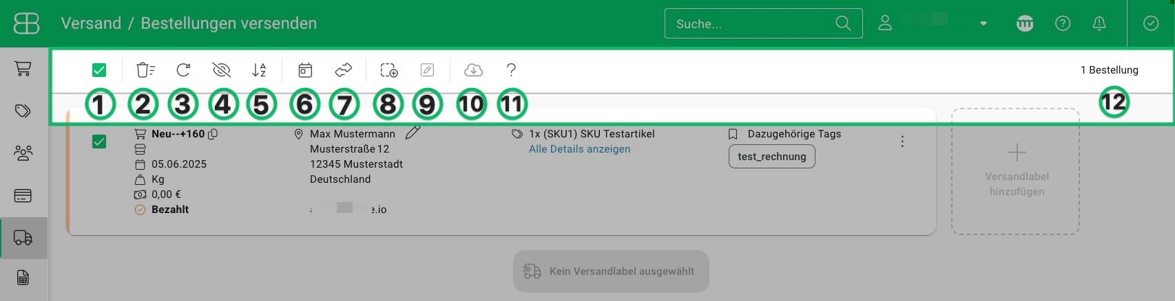 Über den einzelnen Bestellungen findest du unsere Toolleiste: