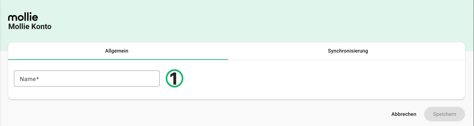 - Name: Gib einen beliebigen internen Namen für deine Mollie Anbindung ein.