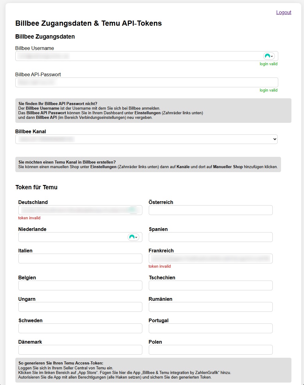 Um Temu an Billbee anbinden zu können, sind zwei wichtige Schritte notwendig: