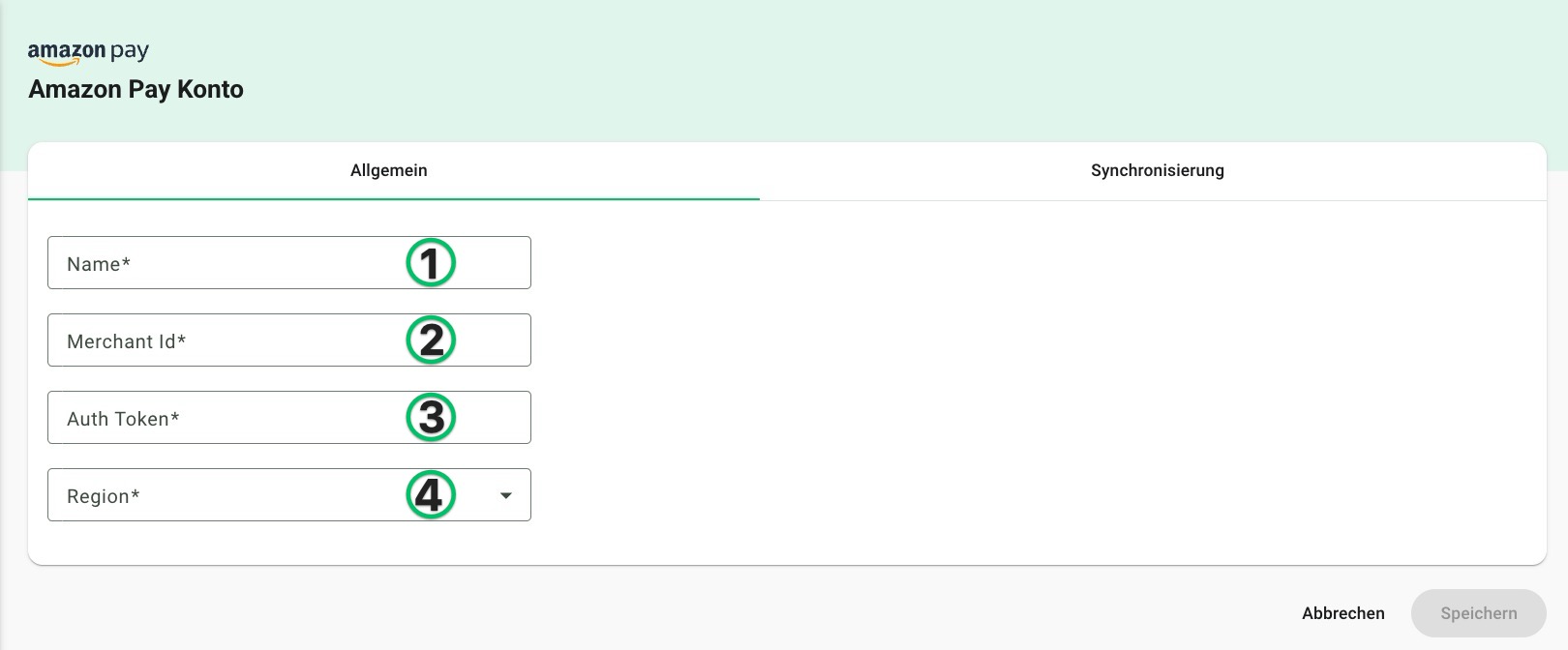 - Name: Vergib einen internen Namen für deine Amazon Pay Anbindung.