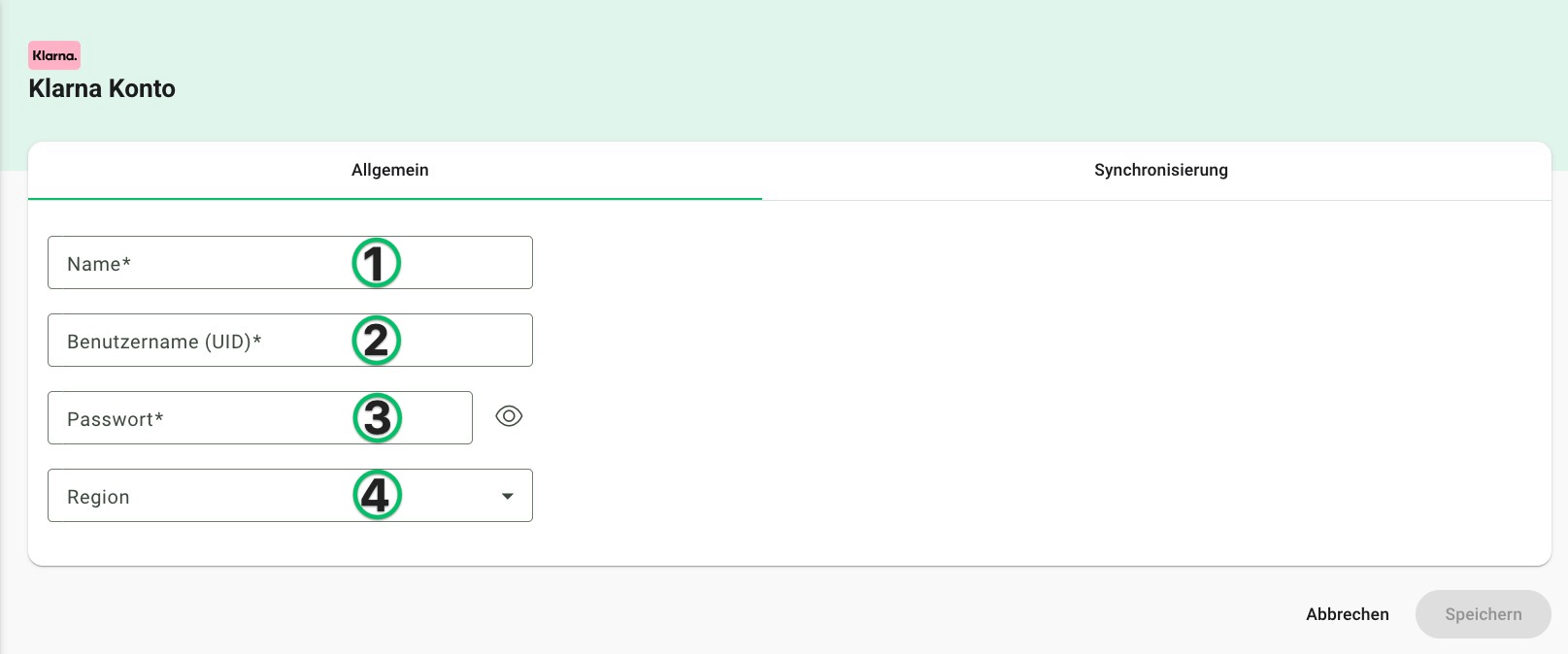 - Name: Vergib einen internen Namen für deine Klarna Anbindung.
