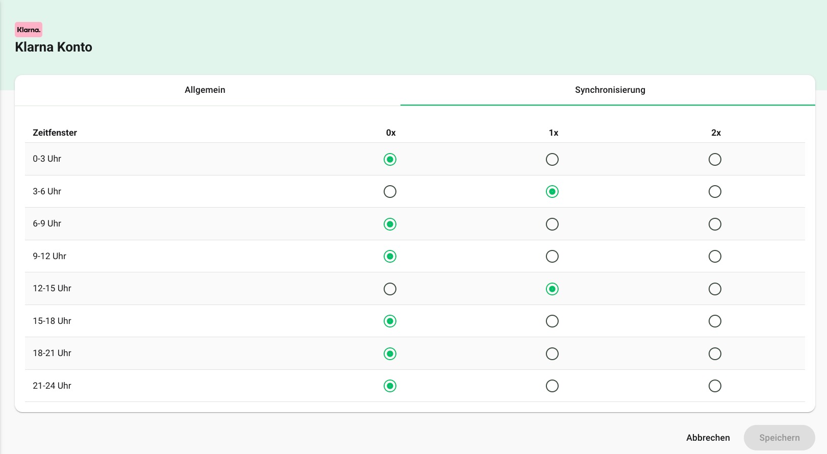 Anschließend kannst du noch die Synchronisierungsintervalle unter dem Reiter "Synchronisierung" einstellen: