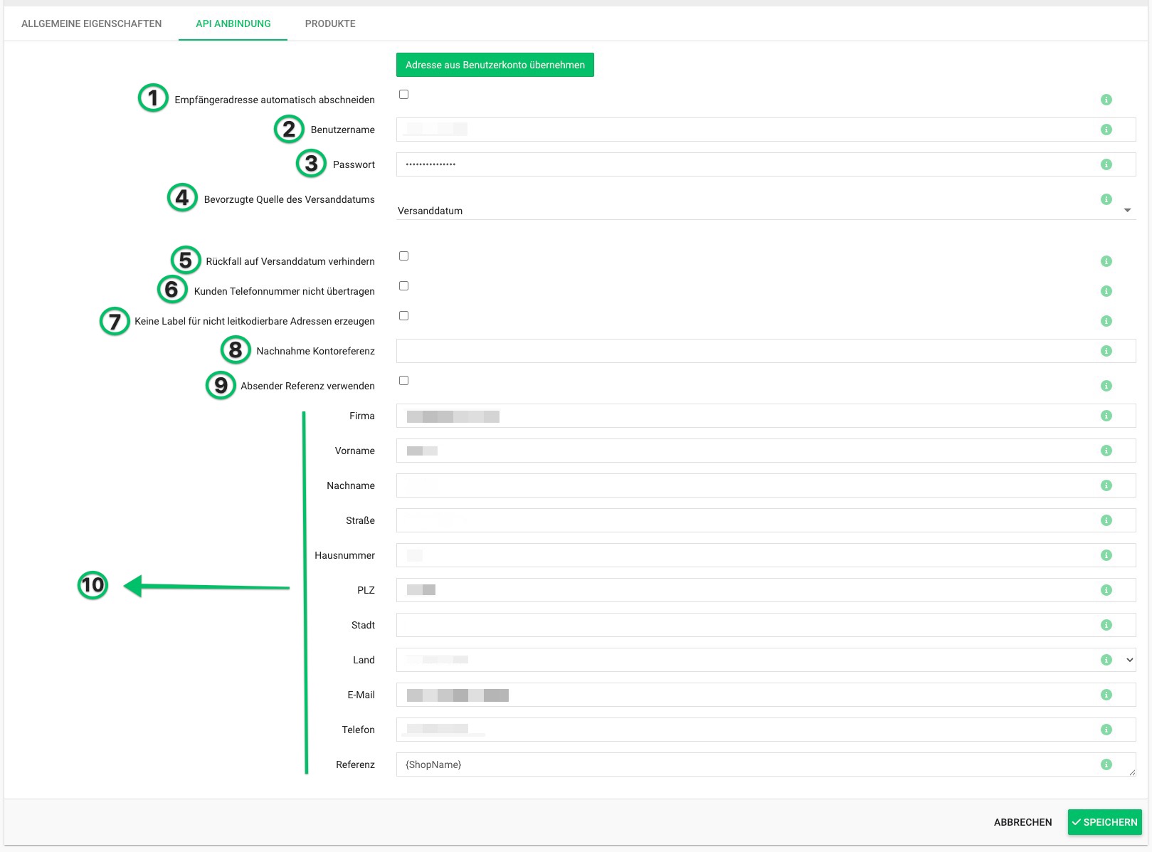 Im Reiter "API Anbindung" kannst du alle api-spezifischen Einstellungen vornehmen: