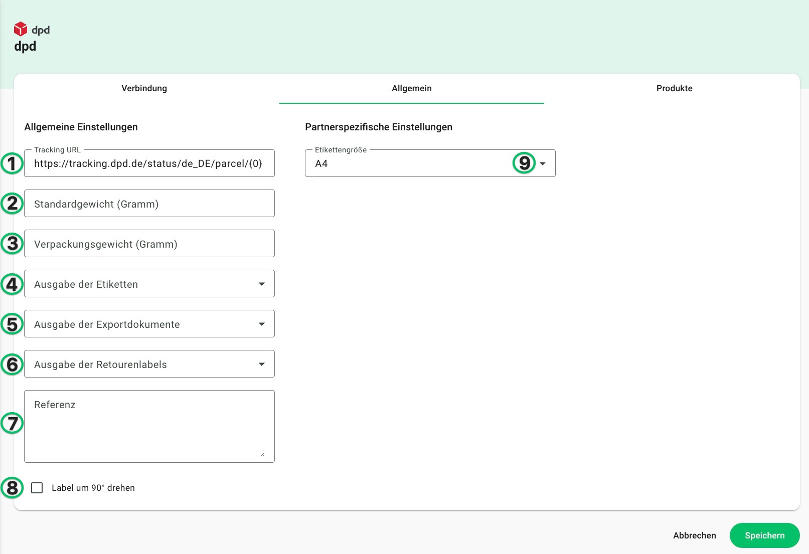 - Label um 90° drehen: Möchtest du bei der Ausgabe des Versandlabels dieses um 90° drehen, musst du diese Option aktivieren.