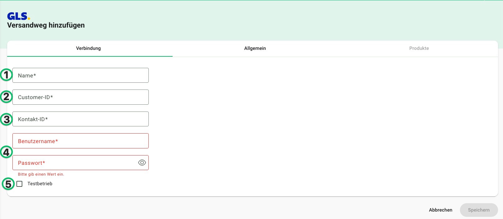 - Benutzername und Passwort: Gib hier den Benutzernamen und das Passwort deines GLS-Accounts ein.