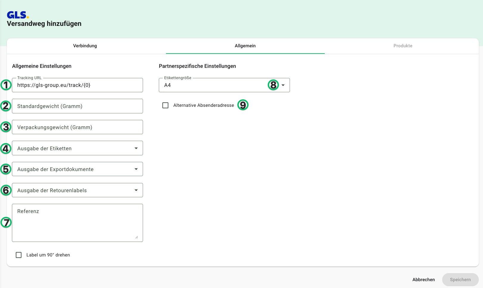 - Tracking URL: Die Tracking URL wird automatisch hinterlegt, wenn du die Anbindung vornimmst.