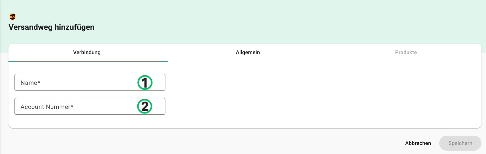 Im Reiter "Verbindung" vergibst du einen Namen für die Versandanbindung und hinterlegst deine Accountnummer: