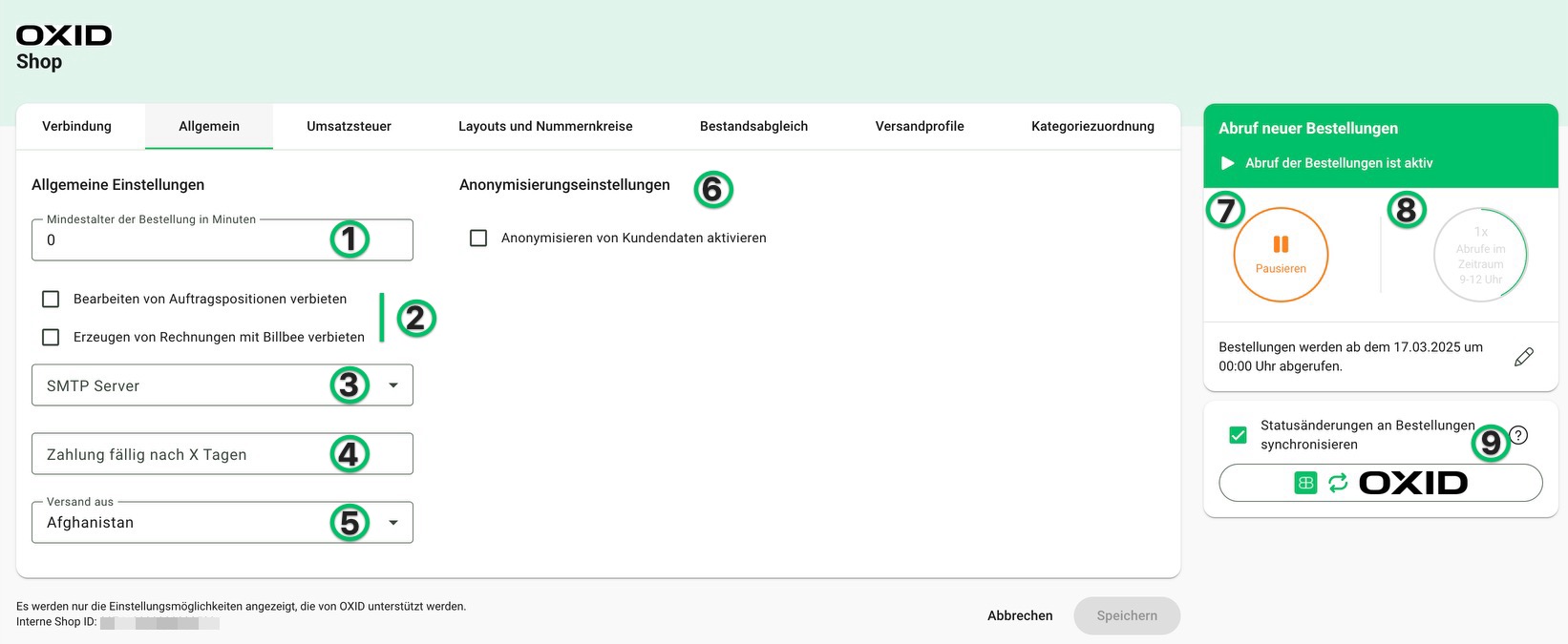 - Mindestalter der Bestellung in Minuten: Legt fest, wie alt eine Bestellung beim Shopabruf mindestens sein muss, damit sie importiert wird. Neuere Bestellungen werden erst zu einem späteren Zeitpunkt importiert.