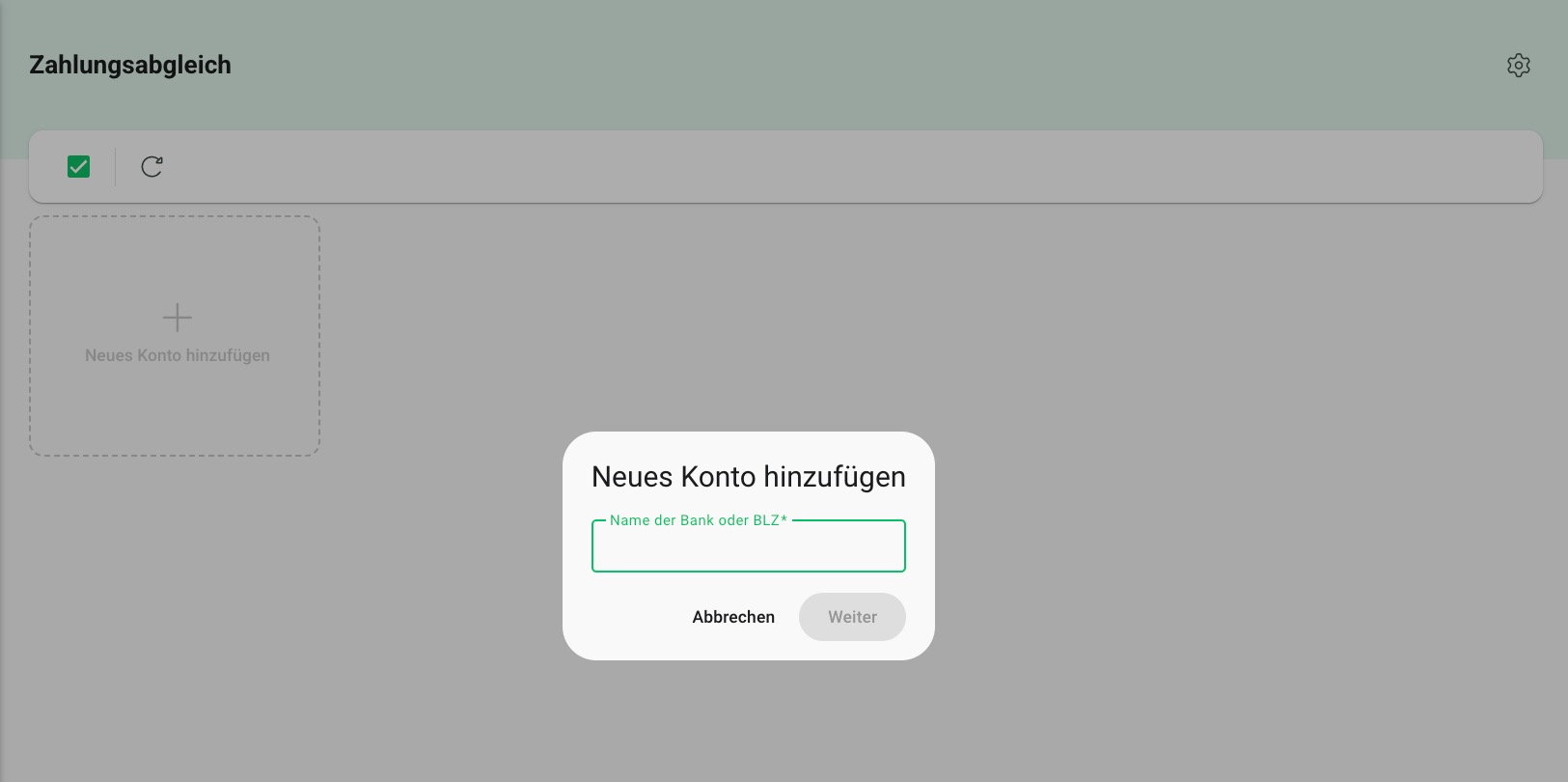 Derzeit kann der Zahlungsabgleich über die finAPI nur für Banken auf Deutschland und Österreich eingerichtet werden. Andere Länder werden nicht unterstützt.